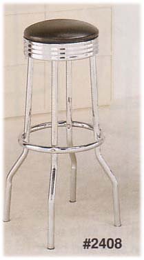 Two beautiful padded soda fountain stools in chrome with black cushion gives nice atmosphere in bars, ice cream store, kitchen & many more other rooms.