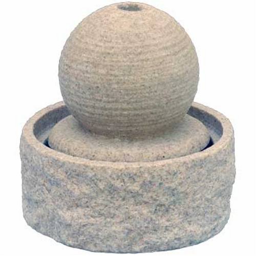 The water hugs the granite-finish sphere, which gives this tabletop fountain a cool look to go with its relaxing sound. The finish on this tabletop fountain looks fabulous, but doesn't have the weight of a solid piece of granite, making it suitable for either home or office. Real granite finish on lightweight fiberglass-reinforced polyresin; 7.5 in. Tall; 7 in. Diameter.
